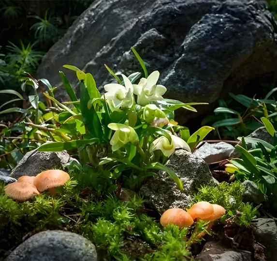 霍山米斛生于北緯31度的生態(tài)核心區(qū)域,千里大別山主峰所在地——霍山。 這里三面傍山,一面臨水,森林覆蓋率達(dá)76%,全年空氣質(zhì)量優(yōu)良率98%,這里便是天然氧吧,是仙草故居。 霍山米斛,扎根于云霧繚繞的懸崖絕壁之間,石縫為家。深山幽谷中,終日與清風(fēng)明月為伴,承天地之靈氣,接日月之精華。 每當(dāng)晨曦微露,便吮吸著晶瑩的朝露;暮色四合時(shí),又沐浴著山間的靄靄霧氣。 它無需寸土栽培,僅以巖石為基,不與凡草爭(zhēng)春。在這深山幽谷中,默默演繹著生命的奇跡。