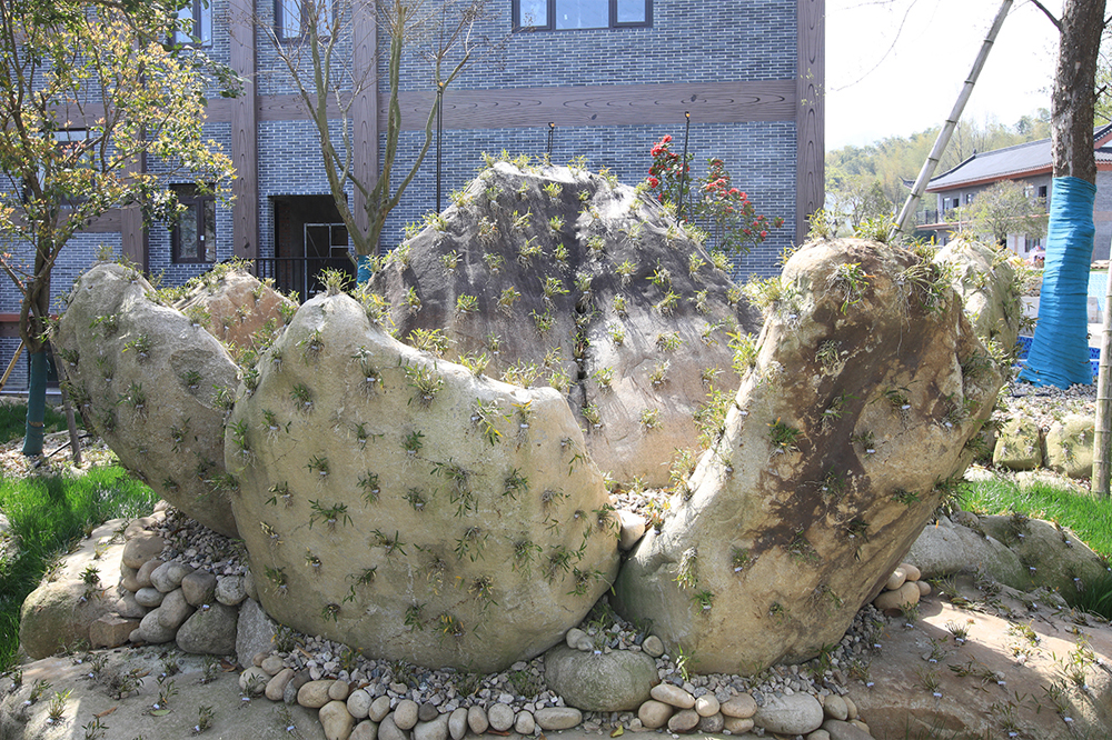 霍魁石斛文化園的蛇形石頭與石斛共同傳遞了再生、長壽、靈性與信仰的深刻內(nèi)涵。